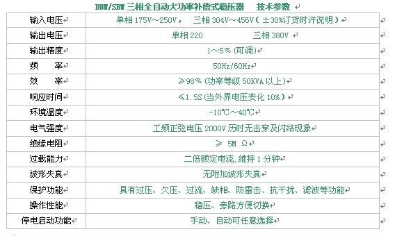 DBW、 SBW三相全自動大功率補償式電力穩壓電源,是我公司引進吸收西歐先進技術,同時結合我國電網狀況為各種惡略的電源環境交流電壓精心設計而成。當外界供電網絡電壓波動或者負載變化時,電壓采樣電路能夠采集輸出電壓變化,經自動控制電路比較、放大,驅動電機正反或反轉。實現輸出電壓的恒定,確保用電設備正常運行。它由接觸調壓器、補償變壓器、自動控制電路和伺服電機、航空套等組成。本產品與其他型號穩壓電源相比是有輸出功率強、效率高、無波形畸變、保護功能強、運行可靠、維護方便、適應任何負載、能承受瞬時超載、可長期連續運行、使用安裝方便等優點。